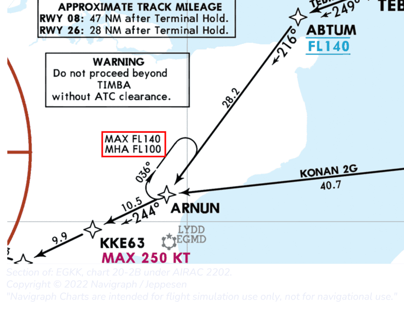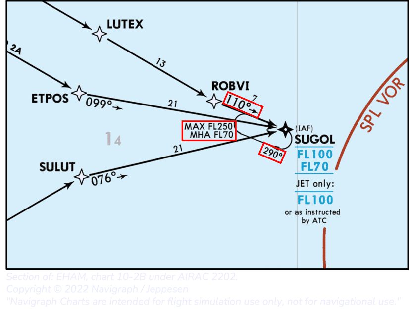 NOTE: The altitude constraints of the fix SUGOL are not relevant for the altitude constraints of the hold at SUGOL. The same principle applies to speed restrictions as well.
