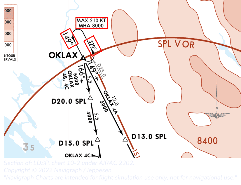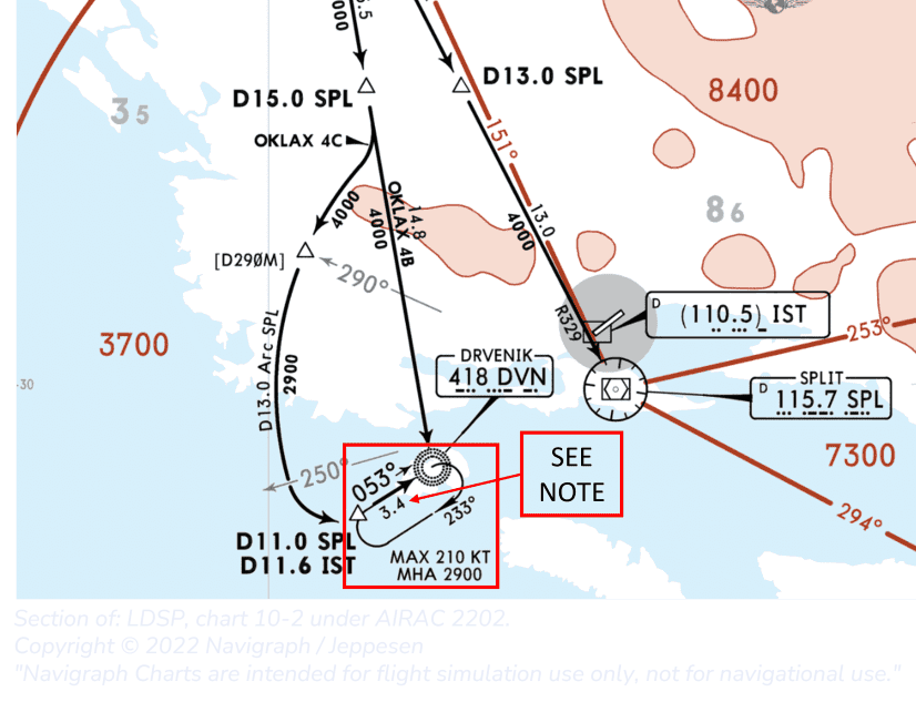 NOTE: The chart's design makes it confusing what the leg length is for the DVN hold. You could argue that this is 3.4 NM. However, 3.4 is just the length between the D11.0 SPL and the DVN fix and does not influence the hold leg length.