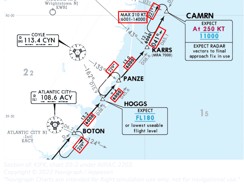 NOTE: Holds at BOTON and PANZE have a minimum hold altitude dictated by the minimum flight altitude of 6000 ft of the earlier and following legs.