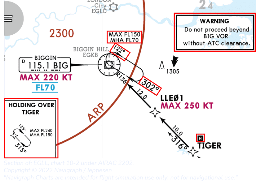 Waypoints with published holds can be spotted by a racetrack pattern, or holds can be published and displayed in a diagram in one of the corners of the main navigation section on the chart.