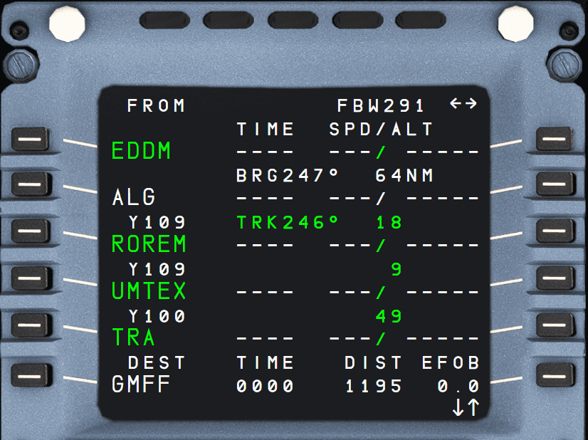 The MCDU F-PLN page is actually a series of pages for the management of the aircraft's active flight plan.