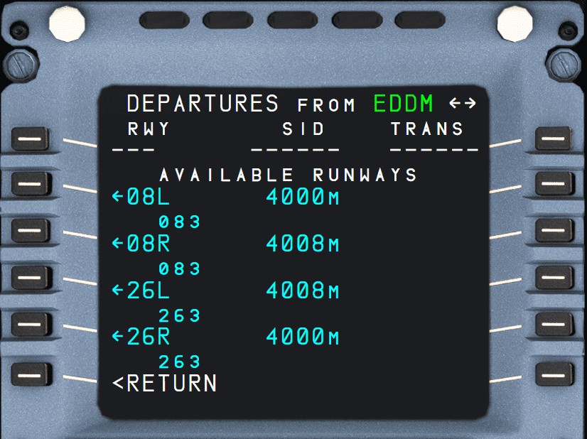 - Used for selecting the departure runway and procedure.