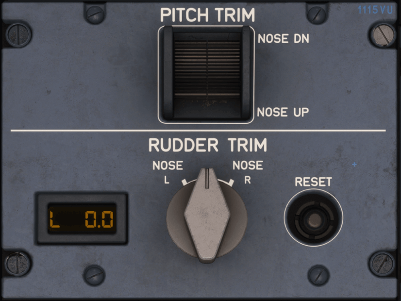 This is used to adjust the aircraft's yaw to keep it flying straight with minimal control input, especially useful when the aircraft experiences asymmetrical forces like engine failure or crosswinds. The rudder trim is controlled by moving the knob left to turn the nose left (L) or right to turn the nose right (R).